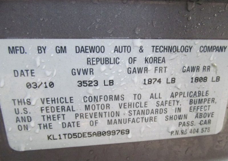 Location, Registration and Inspection of Chevrolet aveo |