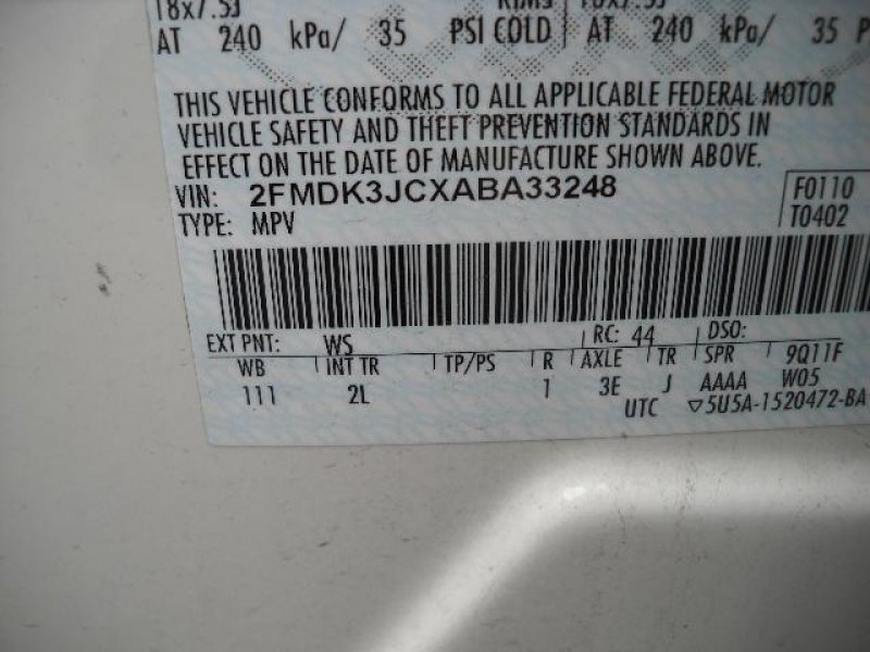 | Chassis No: | 2FMDK3JCXABA3 |