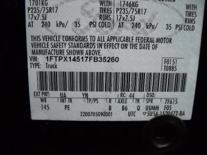 | Chassis No: | 1FTPX14517FB3 |