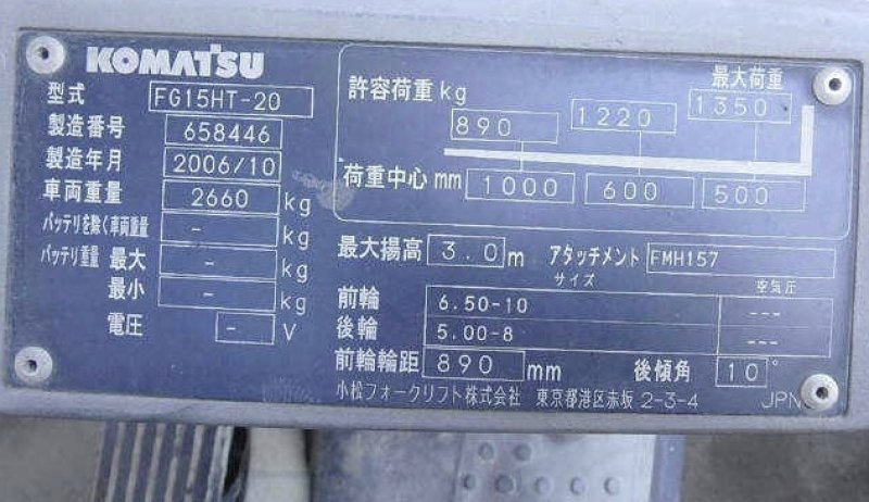 Komatsu Forklift FG15HT-20 general characteristics |