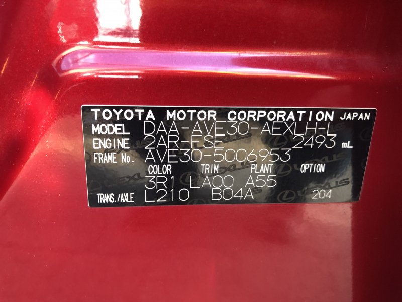 | Chassis No: | AVE30-5006953 |