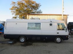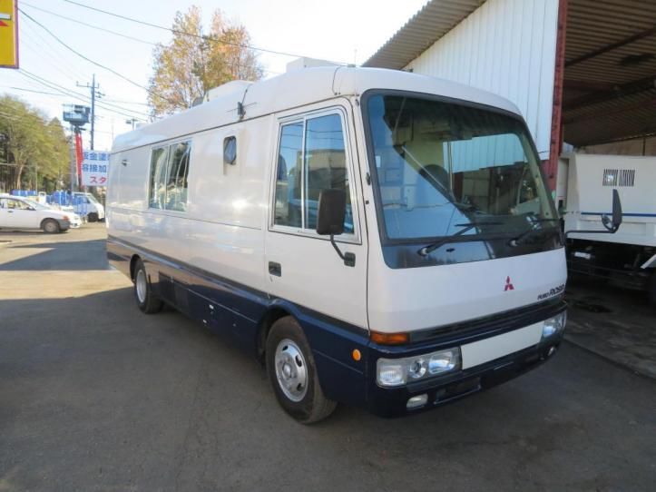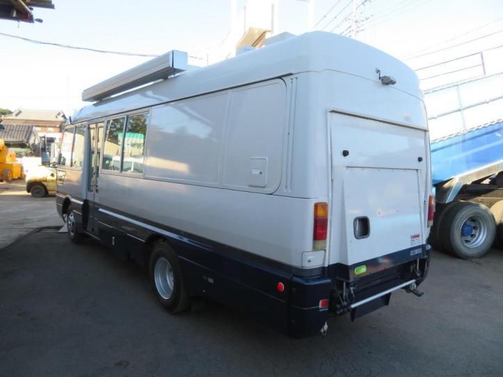 | Special Notes: Small truck 2WD 999 horsepower with turbo, No auxiliary brake, 24V, Genuine color, The interior and exterior of the car are good, the color and luster are perfect. Probably it is a vehicle stored in the garage. Popular Rosa-based 6-speed manual 10-seater vehicle. The previous registration was a public emergency work platform, which was owned by the government, so it runs low and is well maintained. Equipped with Hokuetsu Industries EP3000SD diesel generator in the rear luggage compartment, Other tele/video/telephone/radio/navigation etc equipment operation unconfirmed. The rear gate that is useful for unloading is made by Nippon Lift NLA1123 Maximum lifting load 700kg The generator also comes with an extension cord so that it can be used by unloading it from the vehicle. The charger is equipped with two Japanese batteries SP1-24-20ZT, and the kitchen / shower room is a water supply / drainage facility. Large type with a maximum deployment of 190 cm x 190 cm. A new simple toilet with an external power supply at the rear. Manual awning that blocks sunlight. Partial hood for ceiling ventilation can be opened and closed. |