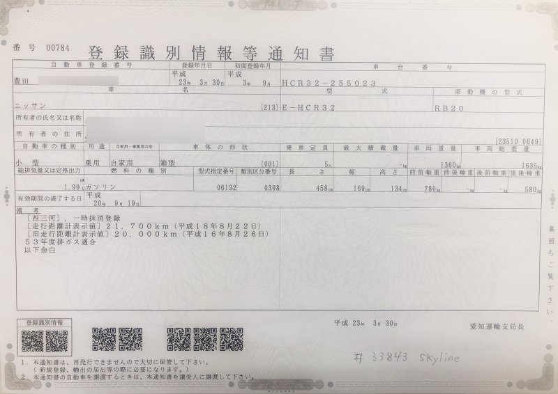 Location, Registration and Inspection of Nissan SKYLINE