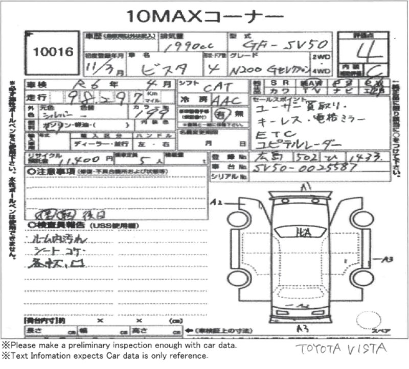 Condition And Damage of Toyota Vista |