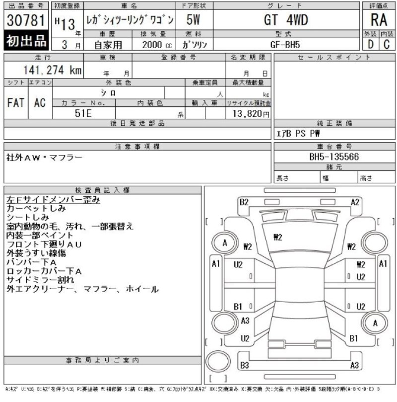 Condition And Damage of Subaru LEGACY TOURING WAGON |