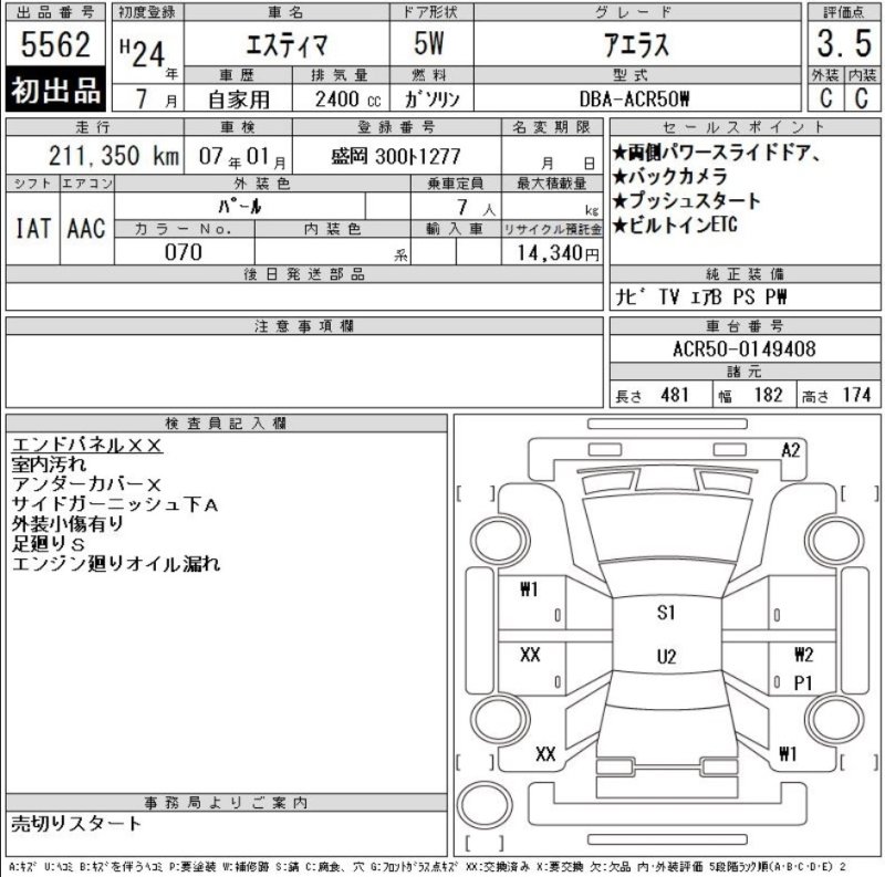 Condition And Damage of Toyota ESTIMA |