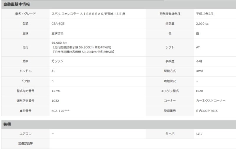 Location, Registration and Inspection of Subaru FORESTER |
