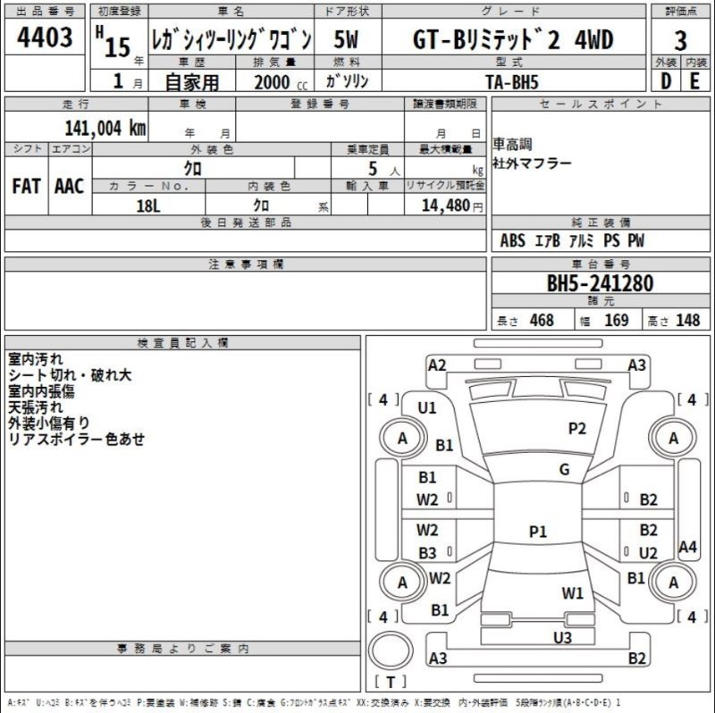 Condition And Damage of Subaru LEGACY TOURING WAGON |
