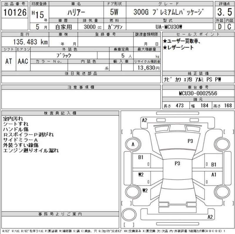 | Special Notes: 3000cc, PS, PW, Airbag,Power seats(driver),Leather Seats,NAVI |