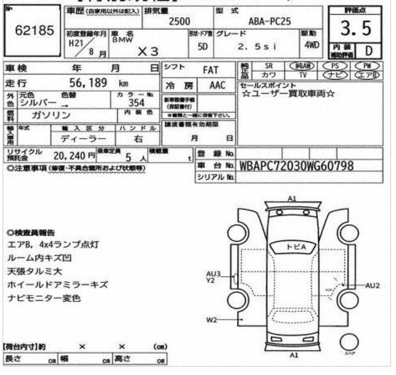 Location, Registration and Inspection of BMW X3 |