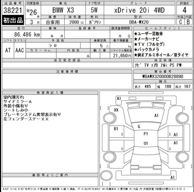 Location, Registration and Inspection of BMW X3 |