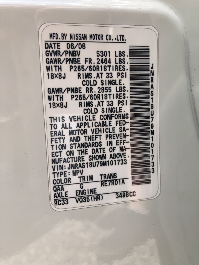 | Chassis No: | JNRAS18U79M101733 |