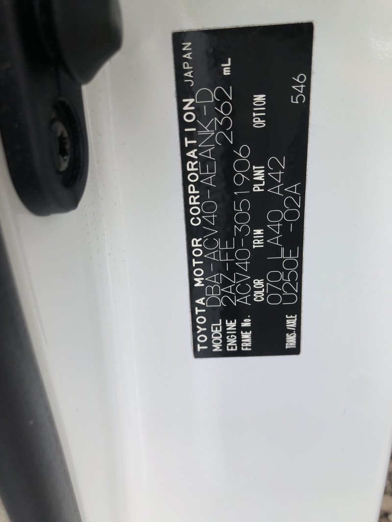 | Chassis No: | ACV40-3051906 |