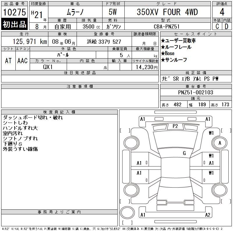 | Special Notes: 3490cc,PS,PW,Airbag,Power seats(driver),NAVI,Sunroof,4WD |