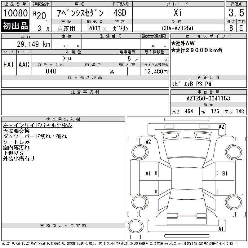 Condition And Damage of TMUK AVENSIS WAGON |
