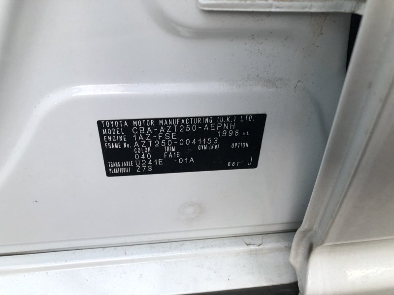 Location, Registration and Inspection of TMUK AVENSIS WAGON |