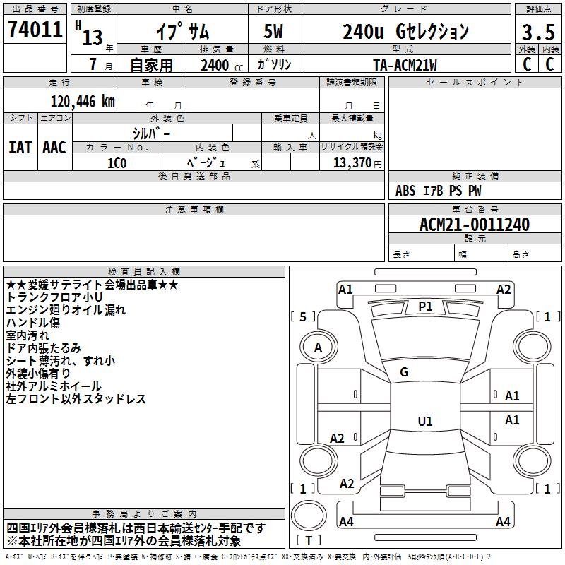 Condition And Damage of Toyota IPSUM |