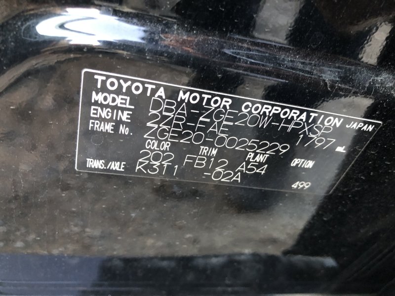 | Chassis No: | ZGE20-0025229 |